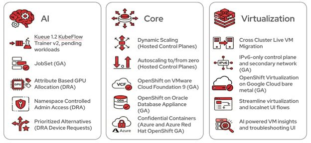 ويركّز هذا الإصدار على تمكين تشغيل مهام تدريب الذكاء الاصطناعي والخدمات المصغّرة بالحاويات (Containerized Microservices) والتطبيقات الافتراضية، وذلك على البنية التحتية نفسها وبنموذج التشغيل ذاته. ويتيح "ريد هات أوبن شيفت 4.21" OpenShift 4.21 أيضاً إمكانية تحديث البنية التحتية الحالية لتقنية المعلومات وتسريع الابتكار في مجال الذكاء الاصطناعي، من خلال منصة موحدة وفعّالة من حيث التكلفة، قادرة على التوسّع تلقائياً بما يتماشى مع متطلبات الأعمال في الزمن الفعلي.